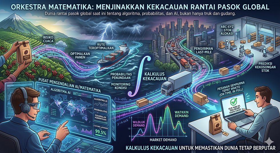 Pernahkah Anda membayangkan perjalanan panjang sebuah kantong biji kopi sebelum sampai di meja Anda? Atau bagaimana sebuah toko daring bisa menjamin barang yang Anda klik hari ini akan tiba besok pagi tanpa cacat? Di balik kemudahan itu, terdapat sebuah "orkestra" matematika yang sangat rumit, yang bekerja keras menyeimbangkan kekacauan dunia nyata dengan kebutuhan ekonomi yang ketat.
